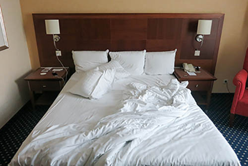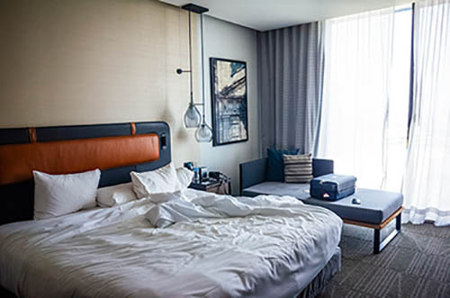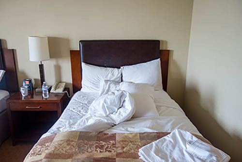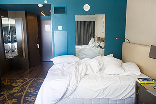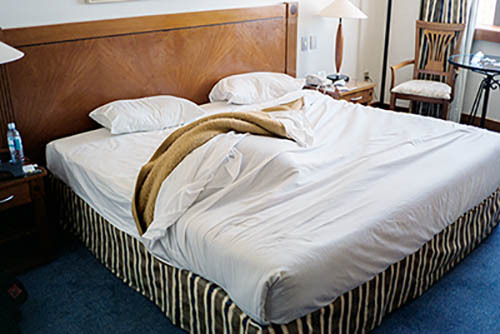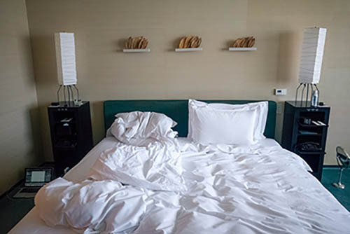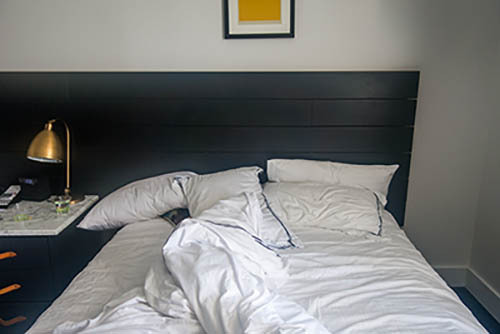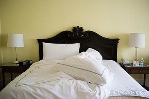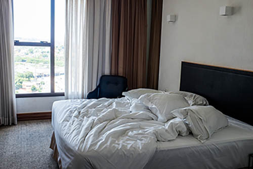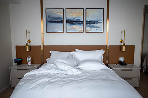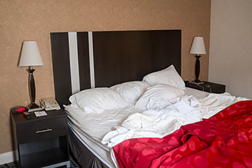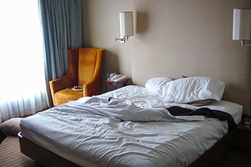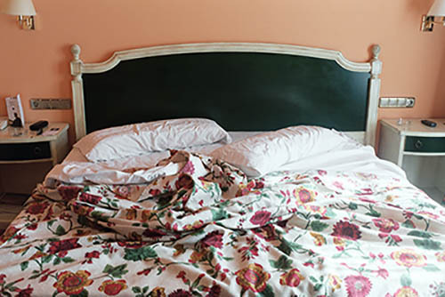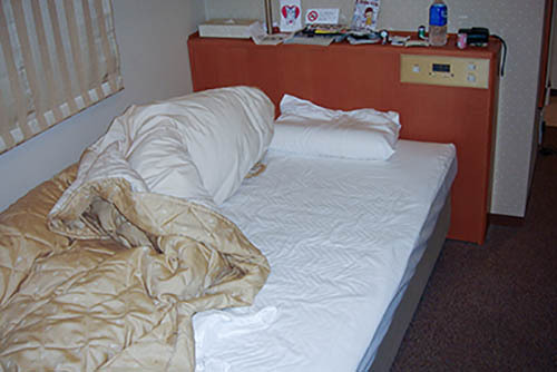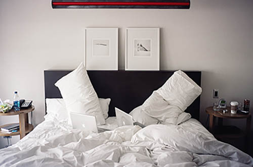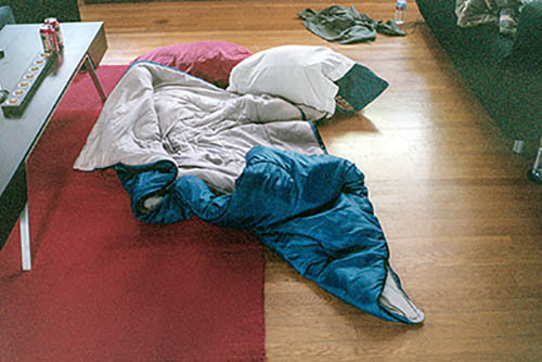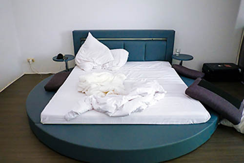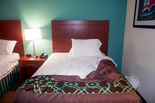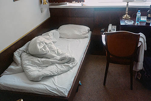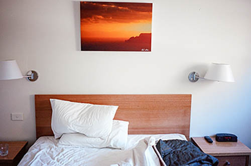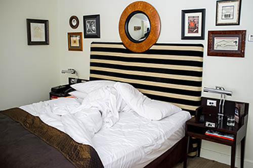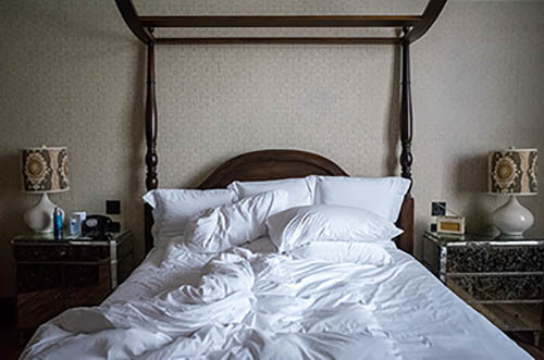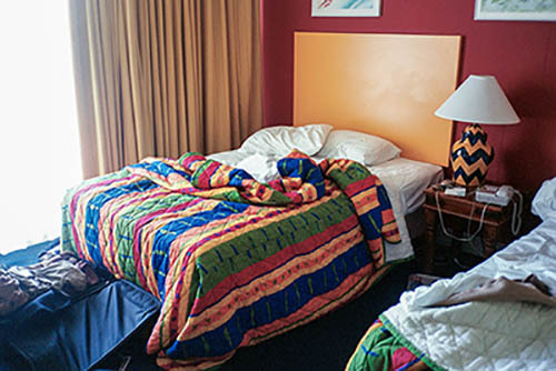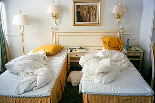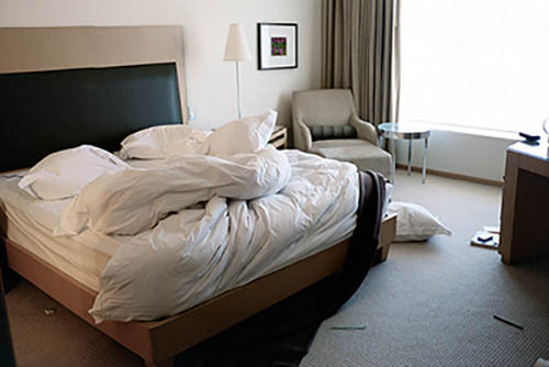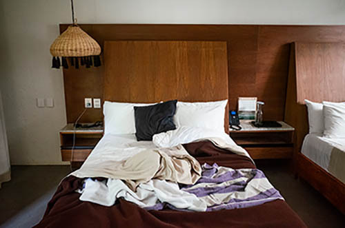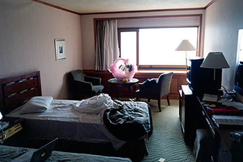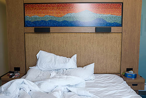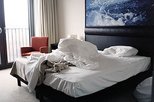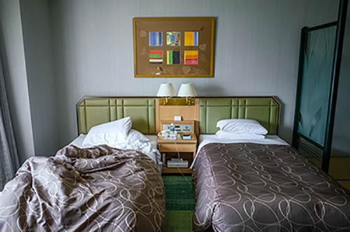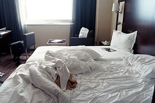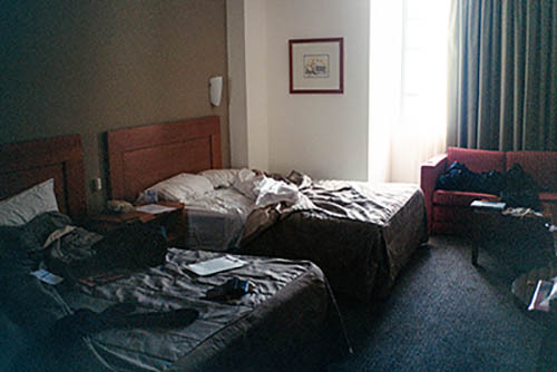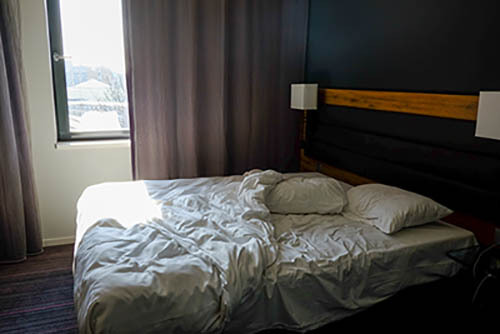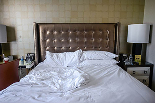Nick Zinner über diese Serie, die 320 Fotografien umfasst: „Als ich jünger war, war ich besessen davon, die Zeit zu dokumentieren, sobald mir klar wurde, dass sie vergeht. So begann ich die Serie „Slept in Beds“ noch bevor ich Teil einer tourenden Band wurde, mitganzen Nachtaufnahmen von mir selbst beim Schlafen mithilfe einer einfachen Lochkamera mit Polaroid-Rückseite. Ich suchte nach Beweisen und einer Erinnerung an eine Zeit und einen Raum, die ich sonst unweigerlich vergessen würde. Neben den Merkmalen des Katalogisierens und der spielerische Fixierung habe ich die Arbeit von Bernd undHilla Becher sowie Sophie Calle immer sehr geschätzt. Alsunsere Band begann zu reisen und touren, habe ich allesdokumentiert – jede Menschenmenge, jedes Bett. Ich wolltenicht, dass alles wieder verschwindet, zumal viele derStrukturen gleich waren – Menschen, Details und Orte. Ichwollte ein Andenken an jedes Erlebnis und jeden Ort haben,an dem es eine Schönheit und Einsamkeit gibt, über dieMillionen Lieder geschrieben wurden.“